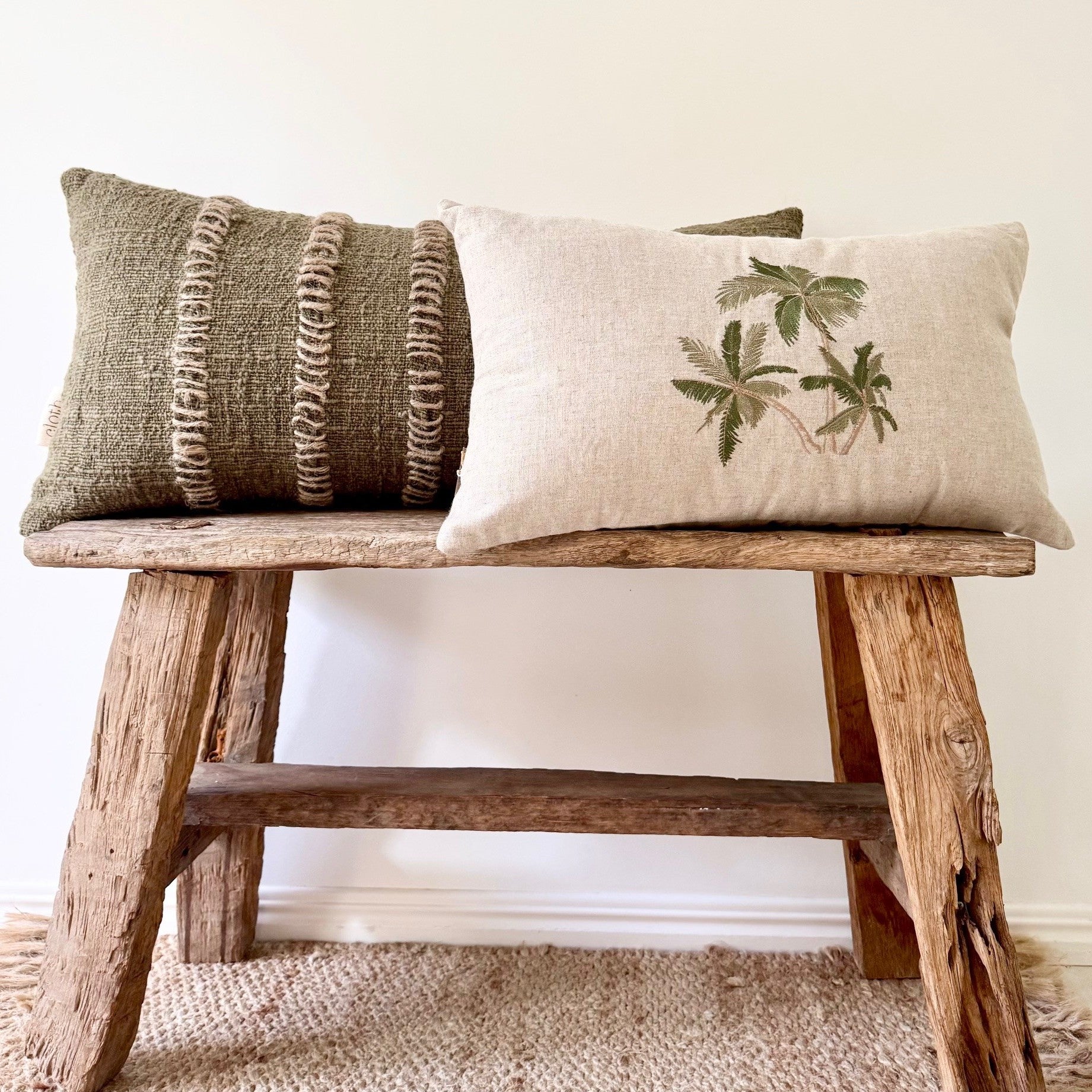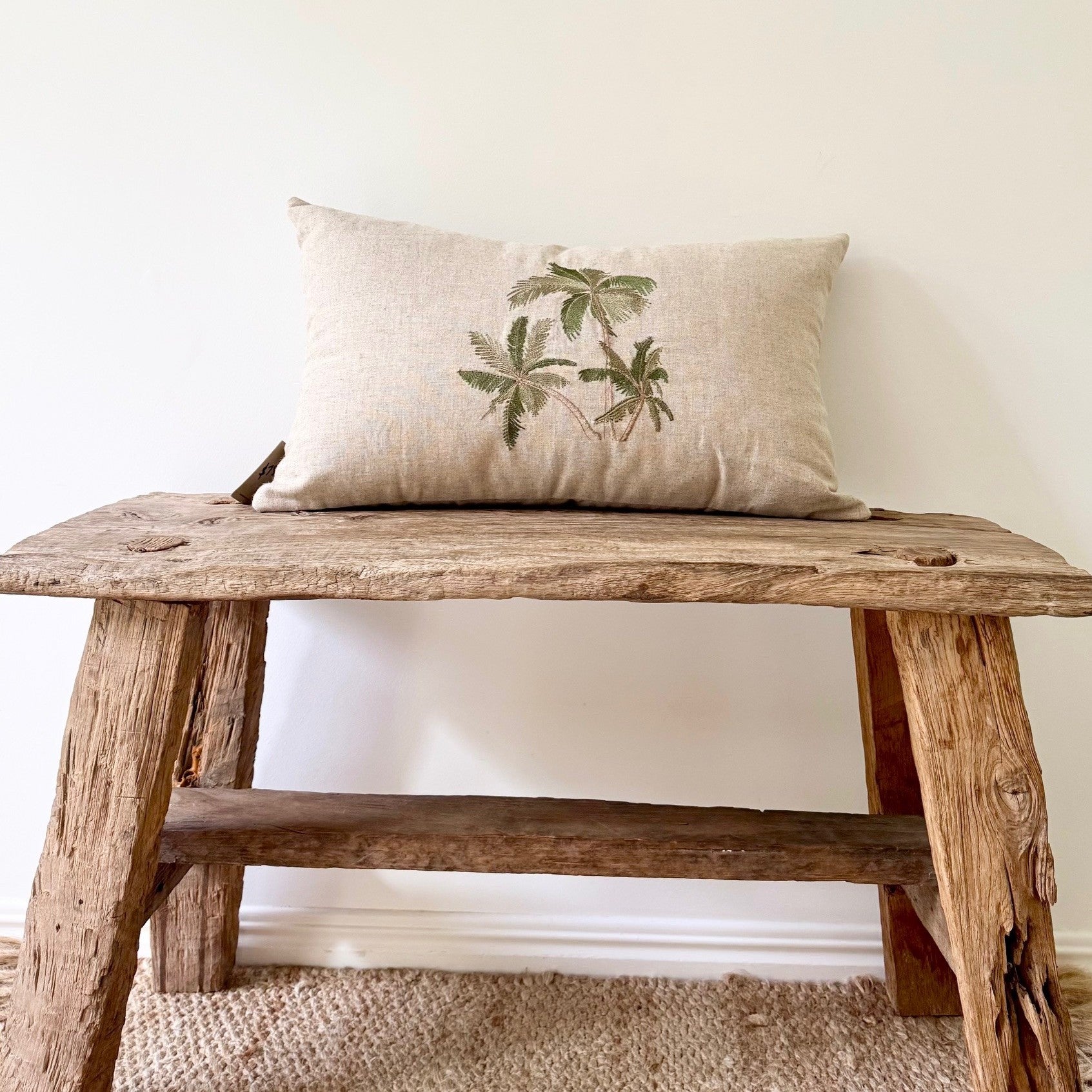 Expertly handcrafted from 100% natural linen, detailed with a decorative Palm embroidery this cushion brings a touch of elegance and luxury to any space. Its soft fabric and durable construction make it the perfect addition to your home decor. With its simple, yet sophisticated design and quality materials, this cushion is a must-have for any interior design enthusiast.